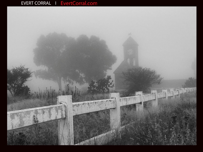 Fue alrededor de hace 6 ó 7 años, era una mañana lluviosa cuando decidí salir a pueblear armado con la nueva cámara Kodak (RIP) con zoom de 10x y lente fija que recién había comprado. En medio de mi camino hacia cualquier parte, y apenas distingible entre la niebla encontré un rancho con cerca de concreto, la imagen que capté marcó el inicio de mi pasatiempo favorito: la fotografía, que años más tarde daría un giro hacia el blanco y negro.
