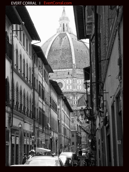 Ahí estaba ella!!, se alzaba majestuosa al final de la Via de Pecori, la Cattedrale di Santa Maria del Fiore. Años antes de visitar la gran Firenze me topé con una fotografía del Duomo, que logró cautivarme con su elegante y original fachada, que en vivo resultó simplemente cautivadora.