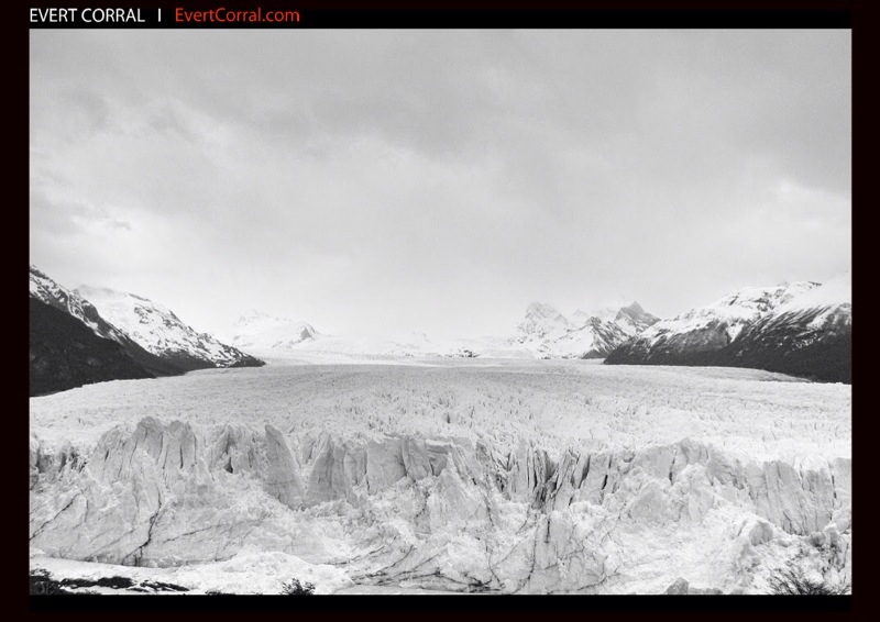 El Perito Moreno luce imponente en esta toma realizada desde los barandales, la vasta extensión de hielo azul y blanco invitaba a recorrerlo cual si fuera una inmensa alfombra. Caminar sobre él aunque sólo fuera por unas pocas horas resultó ser toda una experiencia.