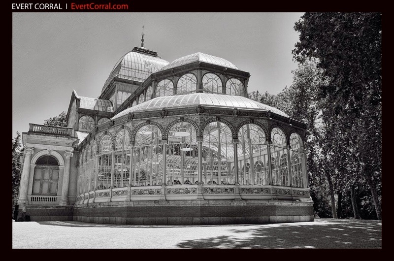 El Palacio de Cristal es una estructura metálica recubierta de vidrio que se encuentra dentro de los Jardines del Retiro, si bien el efecto invernadero de su interior resulta acogedor en invierno, en los veranos calurosos la temperatura puede alcanzar los 38*C, lo que explica que en esta época del año haya más gente en sus alrededores que dentro.