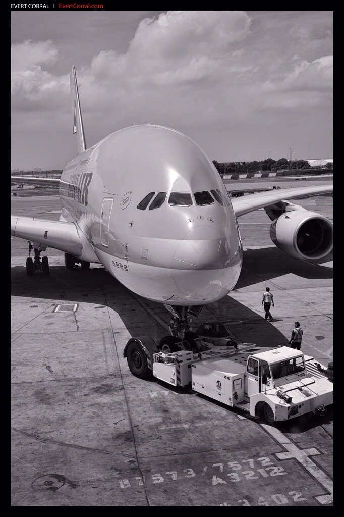 Le he seguido la pista a este avión desde que anunciaron el proyecto y conceptualizaron la maqueta en Airbus bajo el nombre código de A3XX, desde los múltiples problemas y retrasos que se le presentaron durante el ensamblaje, hasta el despegue del primer vuelo de prueba ya con el nombre A380.