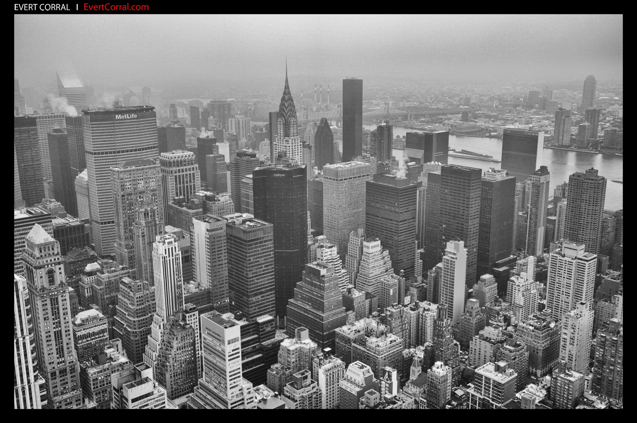 Apenas visible en el fondo, el río Hudson es el encargado de imprimir un poco de “naturaleza” al paisaje donde la tierra ha sido reemplazada por asfalto, y los altos edificios han tomado el lugar de los árboles.